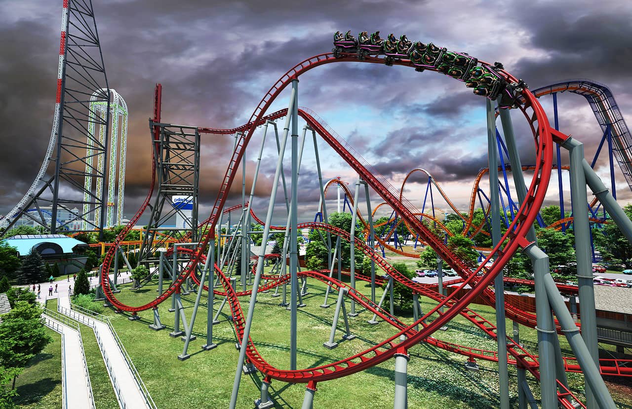 这将是北美最高、最长、最快的倾斜过山车,进一步巩固杉点乐园作为“世界过山车之都”的地位。塞壬的诅咒塔高49米,最高时速达到93公里/小时,轨道全长904米。游客将乘坐列车爬升至塔顶,随后轨道会缓慢倾斜90度,使游客直面下方的地面,带来极致的视觉冲击。过山车包含13个失重时刻、两次360度零重力桶滚倒置以及一个高速“三重下降”元素。